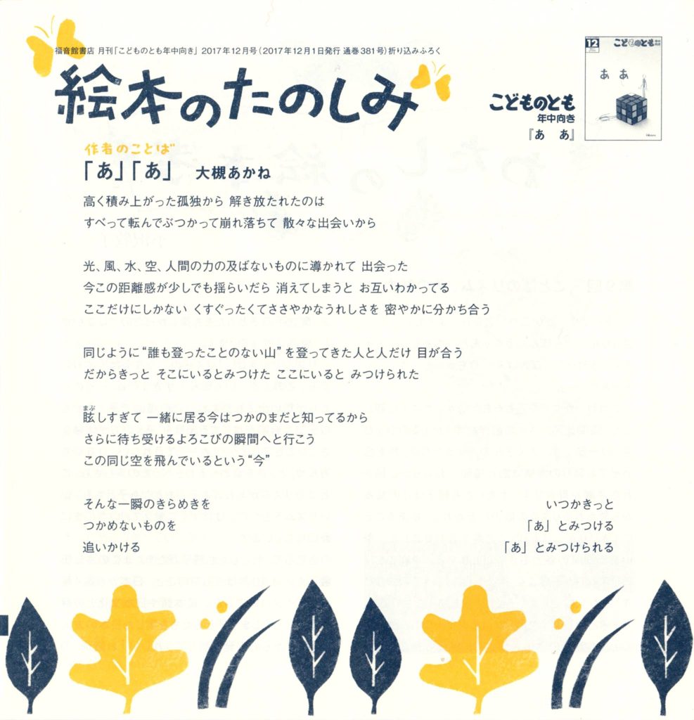 絵本『あ あ』作者の言葉 「あ」「あ」