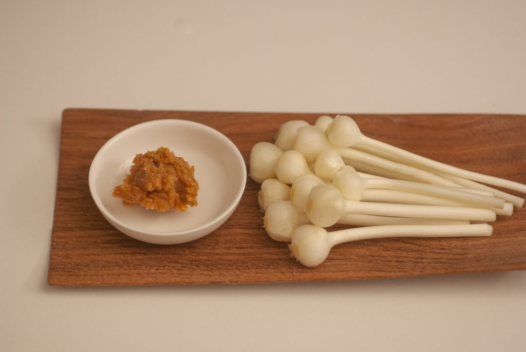 のびるは味噌をつけておつまみに
