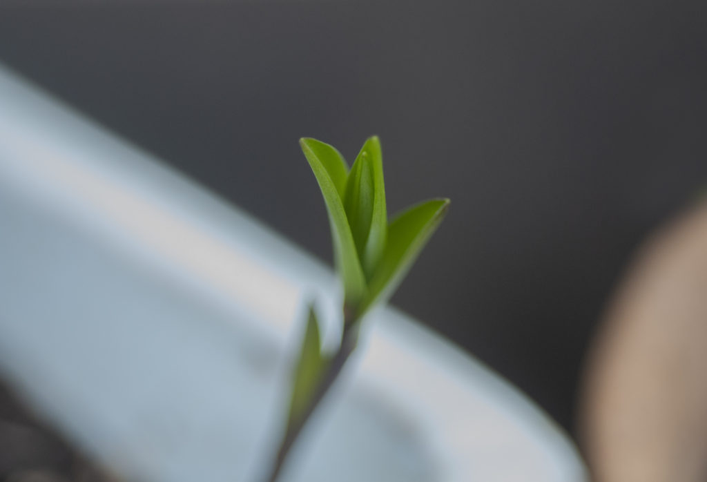 一晩にして双葉が出はじめた野菜の種たち 百合はしなやかに背を伸ばす