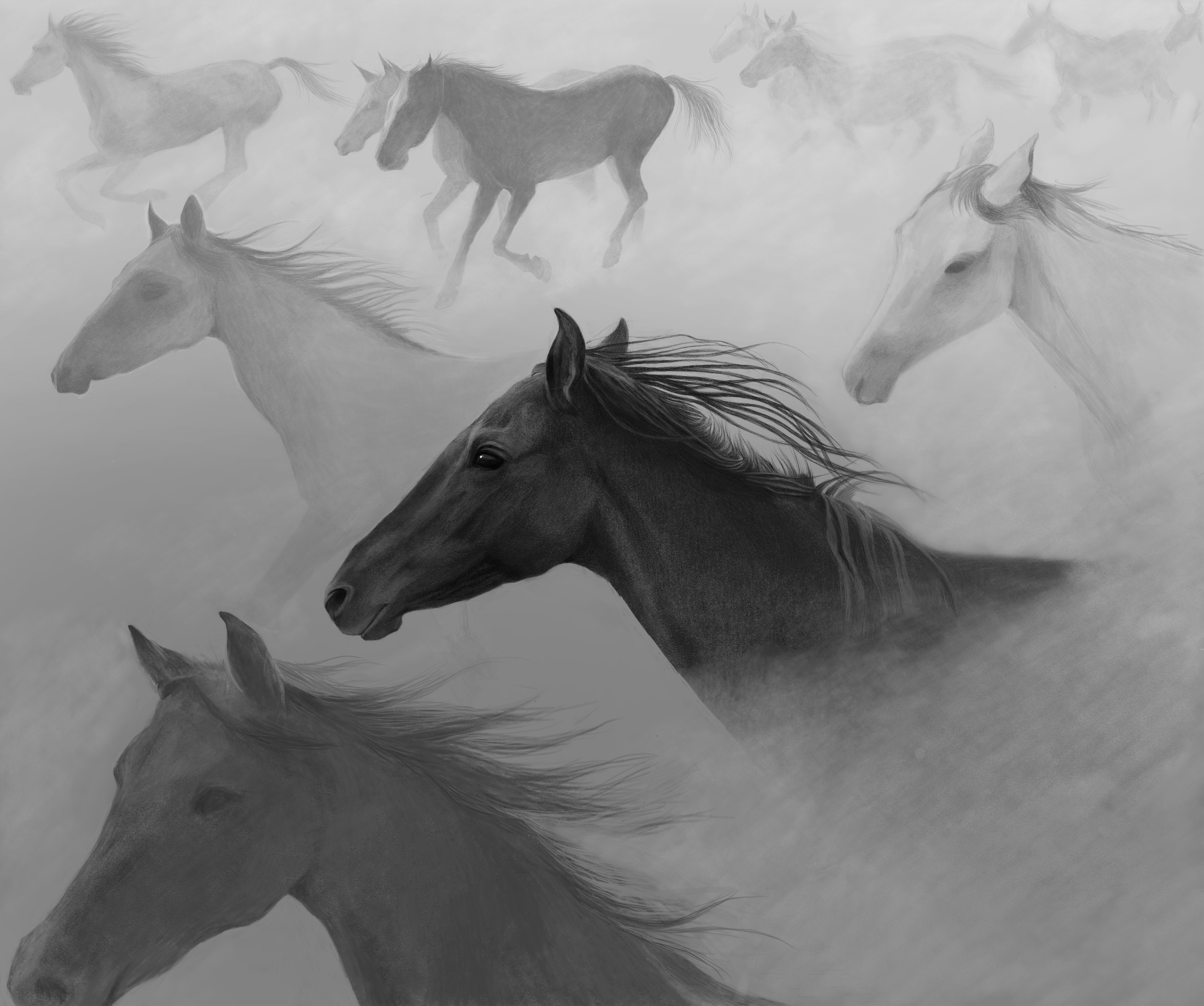 この『透明な目の野生動物』シリーズの、この「馬の群れ」の鉛筆画を描き上げたい 1年以上止まっている 「人間としての修行」という観点でのアルバイトは、先日のとても向いていない業務でやり切った感覚がある 作業期間を確保し、描き、描き上げる それは宇宙の歯車になる、と信じてる