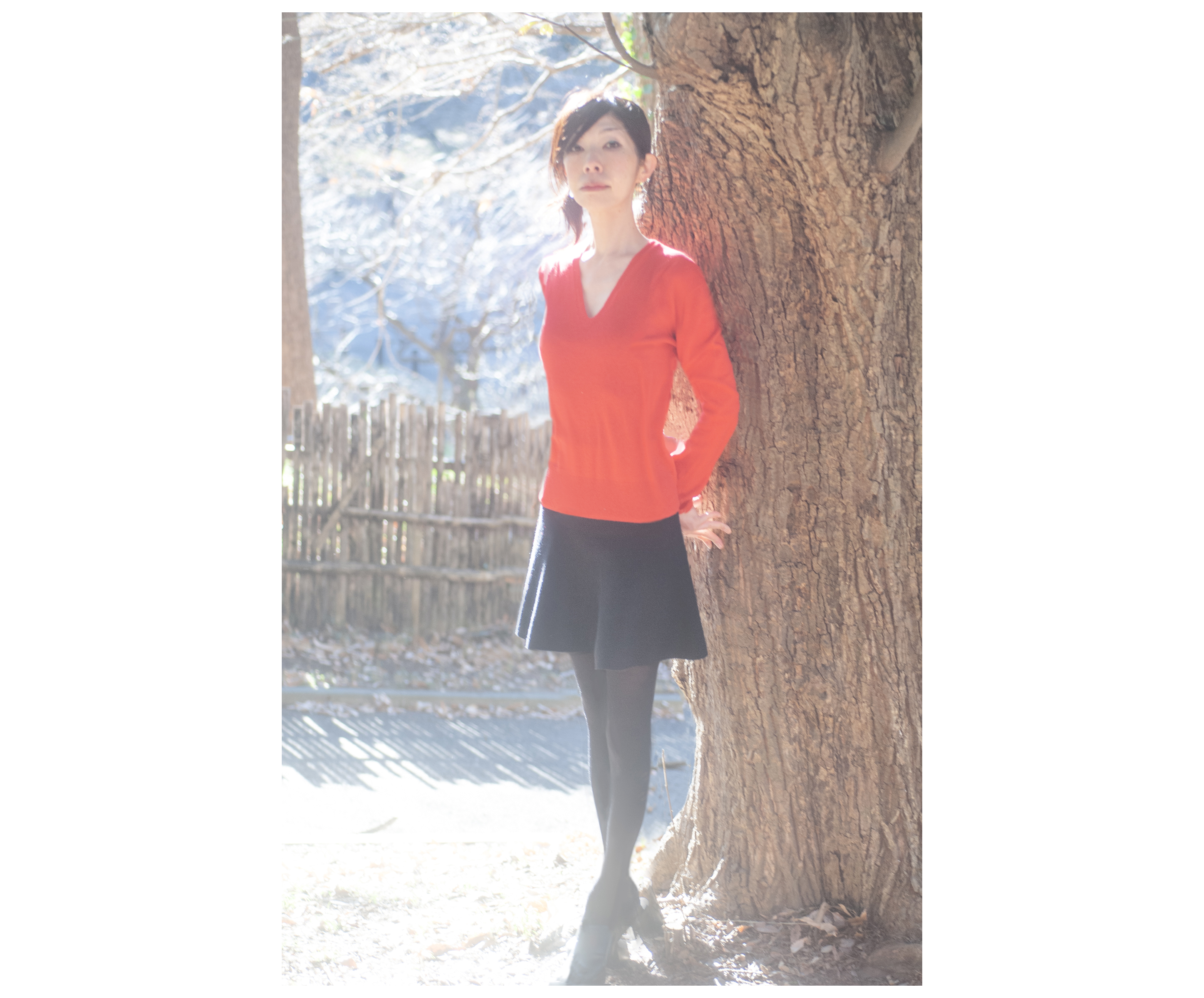 新しいアー写撮りました 父撮影 2枚目、坂の上から撮ってるので妙に脚が小さくなってますね セーターが静電気でシワシワへばりついてるのなんとかしたい